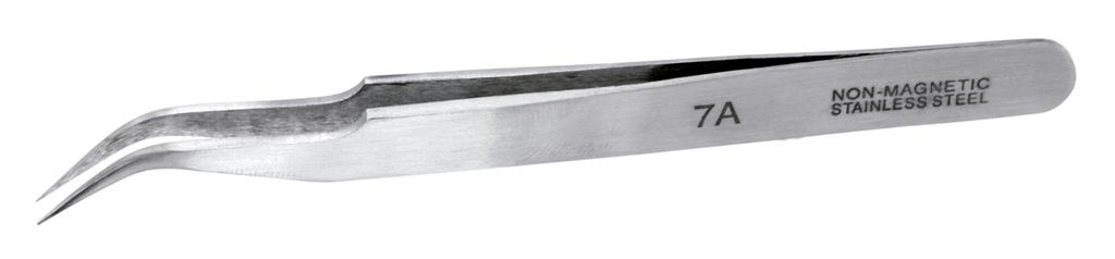 Extra fine curved tweezers, ideal for reaching into awkward areas, picking, holding and placing very small parts and components with great accuracy. They are solvent resistant and anti-magnetic.